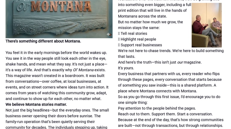 We are a community-focused magazine dedicated to celebrating local businesses and the authentic spirit of Montana heritage.